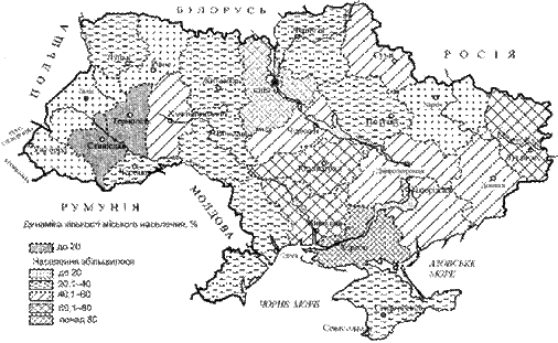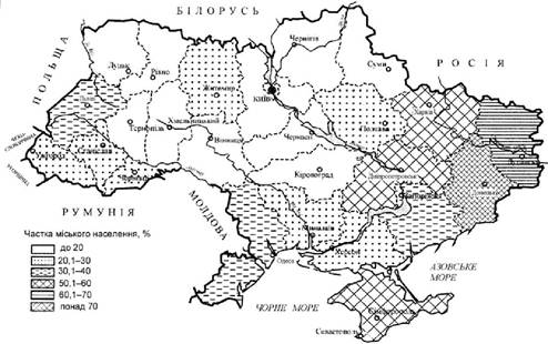 Рис. 2.16. Україна. Міське розселення у 1939 р. (за Р. Лозинським)