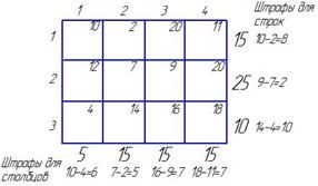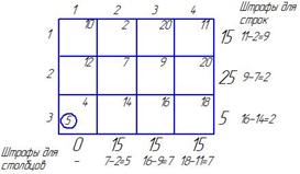 Рисунок 2.8 – Метод Фогеля. Пересчитанные значения штрафов