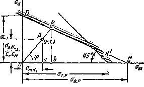 Это отношение характеризует степень близости рабочих условий к предельным для данного материала. В частном случае, когда напряжения не меняются во времени ( При подсчете запаса прочности можно прибегать к графическому построению диаграммы усталостной прочности и глазомерной оценке соотношения между отрезками. Точность такого определения остается в пределах точности определения исходных величин и последующих поправок. В большинстве случаев для определения n предпочитают пользоваться расчетными формулами. Они получаются из геометрических соотношений отрезков, показанных на рис. 9. Уравнения прямых СD и ОB будут: