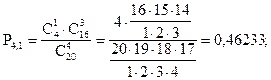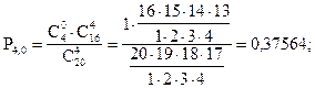 Рис. 4.9. г) Определим вероятность того, что среди 4-х отобранных билетов окажется не меньше трех выигрышных.