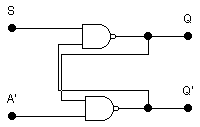 При подаче на вход установки активного логического уровня триггер устанавливается в 1 (Q = 1, Для триггеров этого типа является недопустимой одновременная подача активного уровня на оба входа установки, т. к. триггер по определению не может одновременно быть установлен в ноль и единицу. На практике подача активного уровня на установочные входы приводит к тому, что это состояние не может быть сохранено и невозможно определить, в каком состоянии будет находиться триггер при последующей подаче на установочные входы сигналов пассивного уровня. На рис. 11 и 12 показаны два вида RS-триггеров, выполненных на элементах ИЛИ-НЕ и И-НЕ. Для схемы на рис. 11 активным уровнем является уровень логической единицы, для схемы на рис. 12 - уровень логического нуля. Схема на рис. 12 получила название RS-триггера с инверсными входами - RS-триггер.