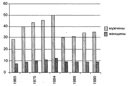 Согласно отечественным исследованиям мужчины значительно чаще, чем женщины кончают жизнь самоубийством, и мужскую суицидальную активность можно рассматривать как устойчивую тенденцию, не только в Российской Федерации, но и в других странах мира. Согласно исследованиям В.Афансьева и Я.Гилинского8 динамика уровня самоубийства на 100 тыс. человек среди мужчин и женщин в СССР выражалась в следующих соотношениях: