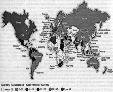 Рис. 8.1. Доступность телевидения по всему миру. Источник: U. S. Census Bureau, 1997 Глава 8. Психосоциальное развитие в раннем детстве 381