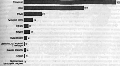 Рис. 8.2. Потребление продуктов средств массовой информации в США (количество часов в год на одного человека; 1998, планируется). Источник: U. S. Census Bureau, 1997