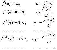 Разложение функции в степенной ряд. Пусть функция (1) Вычислим коэффициенты степенного ряда, записанные в правой части ряда (1) По свойству степенных рядов известно, что они допускают почленное дифференцирование любое число раз в интервале сходимости Дифференцируя (1) получим: