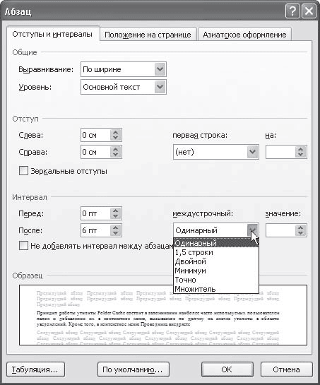 Рис. 4.17. Выбор интервала в диалоговом окне Абзац