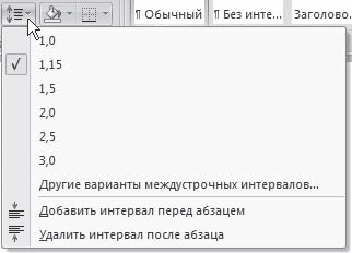Рис. 4.18. Список кнопки Междустрочный интервал