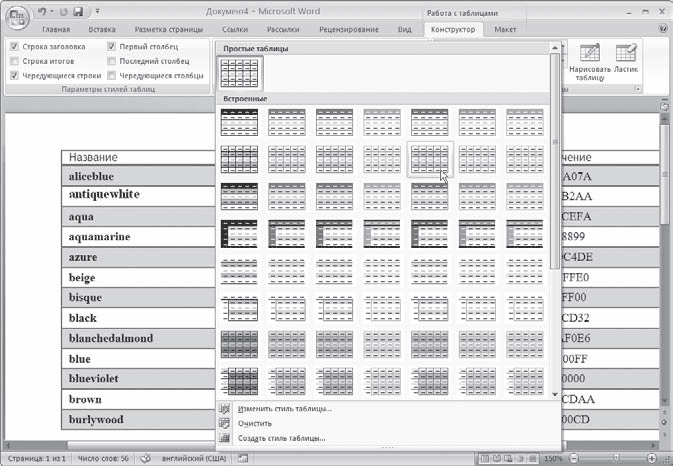 Рис. 5.23. Выбор стиля таблицы