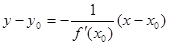 Прямая, проходящая через точку касания перпендикулярно к касательной, называется нормалью к кривой. Ее уравнение имеет вид: