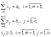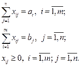 СПЕЦИАЛЬНЫЕ ЗАДАЧИ ЛИНЕЙНОГО 3.1. Транспортная задача (задача оптимального планирования перевозок груза) Имеется m пунктов отправления (производства, поставщиков): А1,..., Аm, в которых сосредоточены запасы некоего однородного груза в объемах a1,..., аm соответственно. Величины ai определяют максимально возможные размеры вывоза груза с пунктов отправления. Суммарный запас груза поставщиков составляет Кроме того, имеется n пунктов назначения (потребления): B1..., Вn, которые подали заявки на поставку груза в объемах b1,..., bn соответственно. Величины bj определяют максимально возможные размеры ввоза груза в пункты назначения. Суммарная величина заявок составляет Требуется разработать оптимальный план перевозок таким образом, чтобы общая стоимость всех перевозок груза была минимальной при условии, что весь груз от поставщиков будет вывезен и все заявки потребителей удовлетворены. В общем виде модель задачи оптимального планирования перевозок груза можно записать следующим образом: