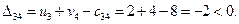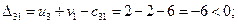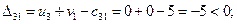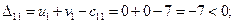 Решив систему, получаем новые значения для потенциалов ui, vj, которые заносим в таблицу перевозок (таблица 3.7). По формуле (3.5) определим оценки свободных ячеек: