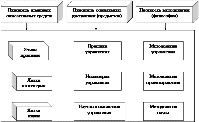 3. Рефлексивное управление в ряду других концепций управления. Управление в форме власти. Поведенческое управление специалистами. Рефлексивное управление. Организационное управление специалистами. Управление в понятиях «физического объекта». 4. Научные основания рефлексивного управления. Праксеология. Праксеолегия ¾ наука, исследующая явления, лежащие в основе рефлексивного управления. Естественнонаучные признаки предмета праксеологических исследований. Понятие факта в праксеологии. Феноменоло гический метод в праксеологических исследованиях. 5. Пример праксеологического исследования. Смысл (пафос, мотив) исследования. Конституирование сущности. Использованный в исследовании материал. Комментарий. 6. Инженерия рефлексивного управления. Методика построения деятельности руководителя в концепции рефлексивного управления. Концептуальное предприятие. Центральная методологическая посылка предложенного далее подхода ¾ стремление развернуть работу в области управления в естественнонаучной традиции. Мы не отходим в методологических вопросах на справедливо и давно раскритикованные позиции позитивизма и сциентизма и в своей концепции выдерживаем практически все критические положения в адрес методологии современной науки (даже со стороны постмодернизма[2]), но сами скорее следуем тяготеющей к традиционализму методологии феноменологических исследований, введенной в философию науки Э. Гуссерлем и далекой от какого-либо модерна. В самом общем виде свою главу мы представляем системой (рис.1), в которой стремимся к достаточно строгому разграничению областей: практики управления, инженерии (проектирования) управления и научных оснований управления. Соответственно, нами затрагиваются методологические основания этих трех областей и используемые в них языковые (описательные) средства. Столь обширная программа работ не может осуществляться достаточно интенсивно по всем направлениям, по крайней мере, на начальных этапах, но, с другой стороны, концептуальный характер главы не позволяет и сузить фронт исследований. Компромисс мы сегодня находим в смещении акцентов на методологические основания и на практику рефлексивного управления. Проблемам этих направлений преимущественно и посвящена данная глава. Проблематизация понятия «труд» Поскольку проблематизация управления «внутри» самого управления невозможна, то попытаемся осуществить ее в контексте краткого исторического анализа понятия труда и его институтов. Проблематизация может быть достаточно разнообразной, а то главное, что от нее ожидаем мы, ¾ получить достаточное обоснование проведения своих исследований.