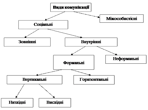Соціальна організація – багаторівнева структура з рівнями керівництва і підкорення. Така структура ефективно функціонує тільки за існування добре налагодженого зв’язку між усіма рівнями. Так, якщо на верхньому рівні організації з’являється необхідність впливати на поведінку представників нижчого рівня, то наказ, розпорядження, вказівка не тільки мають дійти до адресата, але і розповсюдитися за всіма структурними одиницями даного рівня. Тому доцільно проводити аналіз всіх видів комунікацій (рис. 4.1).