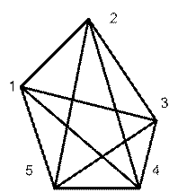 Граф задаётся парой множеств: множества Е, называемого множеством вершин, и множества U, называемого множеством рёбер. Ребро u Î U есть пара (еi, еj), где еi, еj Î Е, указывающая, между какими двумя вершинами проведено ребро. Говорят, что ребро u Î U инцидентно вершинам еi, еj. Если порядок рёбер не имеет значения, т.е. u =(еi, еj) =(еj, еi), то ребро называется неориентированным или просто ребром, если же порядок имеет значение, то ребро u = (еi, еj) называется ориентированным ребром или дугой. Вершина еi называется началом дуги, еj – конец дуги. Граф, содержащий хотя бы одну дугу, называется ориентированным графом или орграфом. Граф G (E, U) называется конечным, если множество Е вершин конечно. Граф G (E, U), у которого каждая вершина еi Î Е соединена рёбрами с остальными вершинами (любые две вершены соединены ребром), называется полным (рис. 3.2).