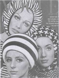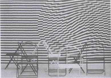 фирмы "Филипс", 1965 Обложка журнала "Vogue", 1965 Пирелли Чинтурато ' Оп-Арт в рекламе, 1966-67 Гае Ауленти "Черные и белые" складные стулья, 1966 Интерьер Мексиканского павильона на олимпийских играх 1968 года в Мехико.
