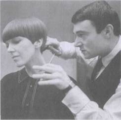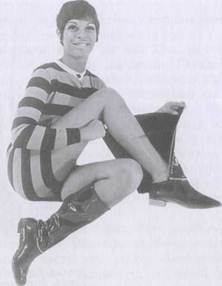 История дизайна Мэри Каунт демонстрирует обувь "Daddy Long Legs", 1967 Мэри Каунт с манекенщицами демонстрирует свою коллекцию обуви и колготок, 1967