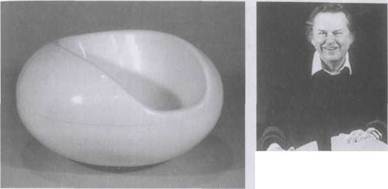 Стол "Kantarelli", 1965 Детское кресло-качели, 1968 Кресло "Globe" (щар), 1965 Кресло "Pastilli" (пепельница), 1968 Кресло-Пузырь, 1965 Эеро Арнио (Eero Aarnio, 1932) Известный финский мастер мебельного дизайна. Родился в Хельсинки,учился в институте прикладного искусства в Хельсинки (1954-1957). В 1962 г. он открывает собственное бюро и работает над интерьерами и промышленными объектами, а также в качестве фотографа и дизайнера-графика. В 60-х гг. экспериментирует с фибростеклом, в результате чего возникает его известнейшая мебельная серия, включая кресла Ball (Шар, Globe,1963-1965) и Pastille (1967-1968), за которое он получил в 1968 году приз Американских промышленных дизайнеров. Эти смелые, ломающие традицию объекты мебели, к которым относится и кресло из плексигла-за Bubble (1968), отражают окружающий мир и дух дизайна 60-х годов. Арнио занимался недолговеными и одноразовыми изделиями поп-культуры. Его проекты пронизаны интернациональным духом и индивидуальностью одновременно. При этом они отвечают скандинавскому представлению о качестве и прочности изделия. Арнио оптимистически смотрел в будущее, в котором должны были сотрудничать индивидуальная целостность прошлого и роботомания будущего.