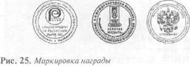Определенную роль в продвижении национальных товаров играют также различные конкурсы и программы, проводимые с определенной периодичностью сами по себе или в рамках различных выставочно-ярмарочных мероприятий, как на федеральном, так и на региональном уровнях. Например. Всероссийская межотраслевая выставка отечественных товаров «Покупайте российское!», название которой говорит само за себя, или программа «Московское качество», одна из декларируемых целей которой — поднятие престижа и повышение конкурентоспособности российской продукции и поддержка отечественных товаропроизводителей. Награды некоторых российских специализированных выставок, встречающиеся в маркировке продукции, можно видеть на рис. 25.