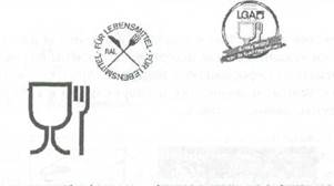 В странах ЕС маркировка материалов и изделий, разрешенных к контакту с пищевыми продуктами, вместо соответствующего текстового указания может осуществляться с помощью специального знака (рис. 29). В то же время при наличии единого знака в некоторых европейских странах одновременно могут встречаться и другие подобные графические заявления в форме знаков оценки соответствия.