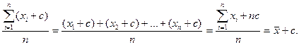 Вследствие этого свойства индивидуальные значения признака можно сократить в с раз, произвести расчет средней и результат умножить на с. 3. Если к каждому индивидуальному значению признака прибавить или из каждого значения вычесть постоянное число, то средняя величина возрастет или уменьшится на это же число. Доказательство: