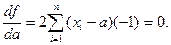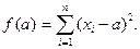 Используя это свойство, при расчетах следует сокращать веса на их общий сомножитель либо выражать многозначные числа весов в более крупных единицах измерения. 5. Сумма квадратов отклонений индивидуальных значений признака от средней арифметической меньше, чем от любого другого числа. Доказательство. Составим сумму квадратов отклонений от переменной а: