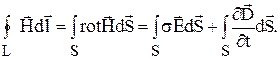 Аналогичным образом выводится (6). Операции интегрирования и дифференцирования у непрерывной функции можно менять местами. Обратный переход к (1) и (2) от (5) и (6) выполняется интегрированием последних по площади, охватываемой замкнутым контуром, и преобразованием ротора по формуле Стокса. Первое уравнение Максвелла в дифференциальной форме показывает, что вихревое магнитное поле создается как плотностью тока проводимости, так и тока смещения.