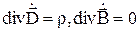Обратный переход к (3) и (4) от (7) и (8) выполняется интегрированием последних по объему V, охватываемому замкнутой поверхностью S, и преобразованием дивергенции по формуле Остроградского-Гаусса. Третье и четвертое уравнения Максвелла в дифференциальной форме показывают наличие носителей у электрического поля (7) и отсутствие носителей у магнитного поля (8).