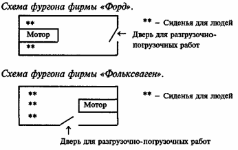 В начале 60-х годов на рынке Германии большой популярностью пользовались небольшие фургоны, изготовлявшиеся фирмами «Форд» и «Фольксваген». Основными покупателями этих фургонов были владельцы небольших магазинов по продаже овощей, фруктов, а также других продуктов питания. Фургоны использовались владельцами магазинов для перевозки различных грузов, но в основном для завоза продуктов, которые они закупали на оптовых рынках. Рынки начинали работать с 4-х часов утра с таким расчетом, чтобы мелкооптовый покупатель мог оформить, получить, погрузить и доставить продукты в свой магазин до его открытия. Значительное количество таких магазинов находилось в крупных и средних городах. Располагались они в основном не на центральных улицах, а в переулках, что в ряде случаев создавало определенные неудобства при загрузке и разгрузке фургонов. Модель фургона, выпускаемого фирмой «Форд», отличалась от аналогичной модели фирмы «Фольксваген» количеством мест для перевозки людей, местом расположения мотора и дверей для погрузочно-разгрузочных работ. По внешнему виду фургоны были похожи и привычны для потребителей (см. рисунок).