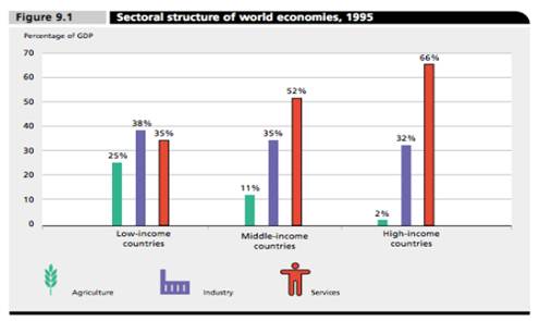 The majority of economists agree today that services make an important contribution to the economic development. Economy divides industries into three sectors: The primary sector: farming, forestry and fishing. The secondary sector: gas, mining and manufacturing, electricity, water, construction. The tertiary sector: service sector