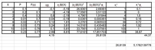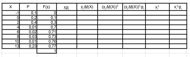 В лист отчёта поставьте цифру один и напишите «Обработка дискретной случайной величины». В первом столбце слева расположены значения дискретной случайной величины