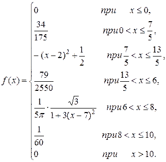 Перерисуем его в лист отчёта, не забывая подписывать оси. Теперь найдём моду дискретной случайной величины. Исходя из определения моды для дискретной случайной величины, по полигону распределения видно, что модами будут являться: В лист отчёта поставьте цифру два и напишите «Обработка непрерывной случайной величины». Выполнение этой части работы производится без компьютера. Компьютер может быть использован лишь для арифметических расчётов с помощью калькулятора, встроенного в операционную систему. Выписываем в лист отчёта плотность распределения непрерывной случайной величины из варианта заданий.