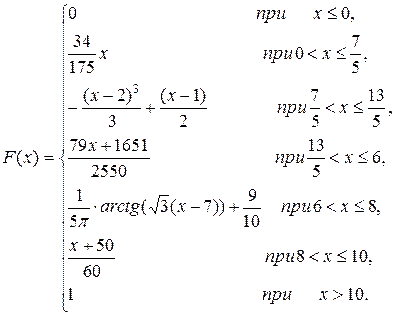 Проверьте правильность Ваших действий: в самой нижней ячейке должна получиться единица. Если это не так, то Вы что-то сделали неправильно. В лист отчёта ниже таблицы запишите подробно вычисление значений функции распределения по её свойствам и формулам (6,7), взяв уже вычисленные значения из колонки 1.) Если 2.) Если 3.) Если 4.) Если 5.) Если 6.) Если 7.) Если 8.) Если 9.) Если Используя форму записи как в формуле (7) запишем: