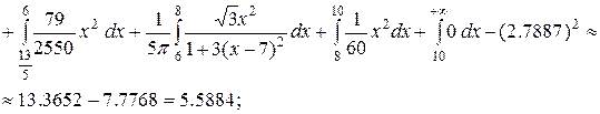 Построим графики плотности распределения (рис.13) и функции распределения (рис.14). Вычислим математическое ожидание непрерывной случайной величины. Для этого воспользуемся формулой (14).
