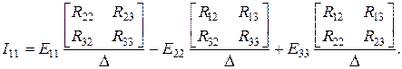 де: Контурні струми можна виразити через контурні ЕРС і алгебричні доповнення головного визначника системи рівнянь: