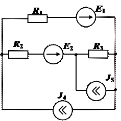 Виконаємо розрахунок кола рис. 3.4. методом контурних струмів. Визначаємо кількість незалежних контурів та задаємось довільними напрямками контурних струмів в них. Коло має три незалежних контури, два з них містять джерела струму. Отже, контурні струми другого та третього контурів відомі: ІІІ=J 5, ІІІI=J 4. Увага! Два контурні струми не можуть одночасно протікати через одне джерело струму. Якщо джерело струму розташоване між двома контурами, то лише один контурний струм може проходити через це джерело, іншому обирається незалежний контур, що не містить джерела струму.