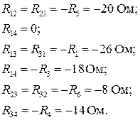 Дійсні напрямки струмів у гілках з врахуванням знаків показані на рис. 3.23, б. Значення струмів тотожні значенням, отриманим методом контурних струмів. Використовуючи вхідні та взаємні провідності можна знайти залежність між струмом будь-якої гілки і будь-якою ЕРС схеми. Залежність струму третьої гілки