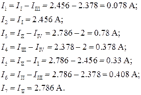 Напрямок струму у гілці збігається з напрямком більшого контурного струму, що проходить по ній, як показано на схемі рис. 3.7.