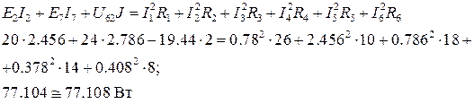 Перевірку правильності розрахунку здійснюють за допомогою підстановки знайденої ЕРС