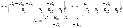 Застосовуючи визначники, розв’язуємо систему рівнянь і знаходимо контурні струми: