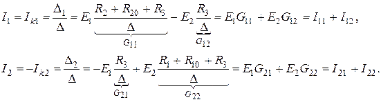 де: Розв’язуючи систему рівнянь будь-яким способом, наприклад, за правилом Крамера, одержуємо контурні струми: