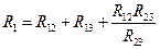 Опори сполучення “трикутник” за відомими опорами “зірки” визначаються так: