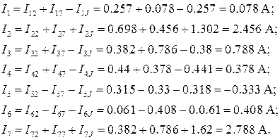Розв’язок цієї системи рівнянь дає контурні струми: