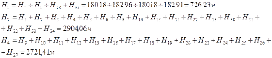 Поэтому, для рассматриваемой площадки (рис.1.1), черные отметки вершин могут быть найдены как: