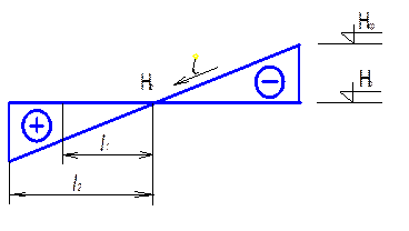 Этот метод является ориентировочной проверкой результатов. Тем не менее, точность расчета для практических целей вполне достаточная. На плане строительной площадки выбирается наиболее характерное продольное (поперечное) сечение и показывается на бумаге с соблюдением вертикального и горизонтального масштабов. После этого графическим способом находятся центры тяжести фигур площадей насыпи и выемки (рис. 2.1). Расстояние L между центрами тяжести площадей фигур и будет ориентировочной дальностью перевозки грунта при производстве планировочных работ. При сложном очертании поперечного профиля, например, при выемке в средней части площадки и насыпях по обеим сторонам ее, среднее расстояние возки равно полусумме (L1+L2) / 2.