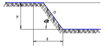 В каждом конкретном случае крутизна стенок котлована или траншеи зависит от глубины выемки “H” и вида грунта. На практике крутизну откоса обозначают величиной “m”, называемой коэффициентом крутизны откоса. Рис. 3.1 Поперечный разрез траншеи для определения величины заложения откоса