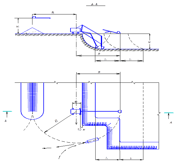 В1 = 0,75∙R (4.12) В2 – расстояние от оси экскаватора до подошвы внешнего откоса, равное В2 = 0,7·R3 (4.13) Количество проходок для широких котлованов может быть найдено п = (4.14)