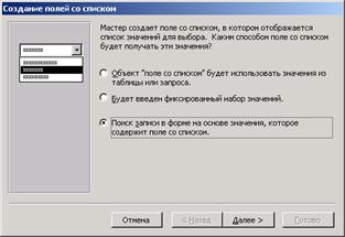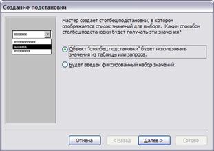 Выполните указания окон при задании типа данных – мастер подстановки: