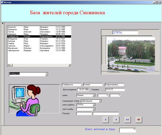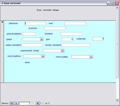 6.4 После этого можно заполнять таблицу “База жителей”, дважды щелкнув по названию формы.