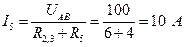 10. При включении рубильника P1, сопротивление R1 замыкается накоротко, и схема цепи имеет вид на рисунке 1.1е. Эквивалентное сопротивление цепи в этом случае: RAB=R2,3,4,5=5 Ом. Поскольку напряжение UAB остается равным 100 В, можно найти токи в резисторах R4 и R5: