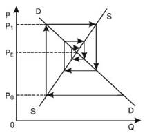 Рис.10.5– Паутинообразная модель, если наклон линии предложения более крутой, чем линия спроса